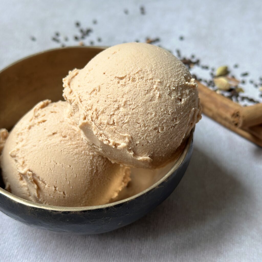 本格的なマサラチャイのスパイシーな香りと味わいを、シナモンとメイプルシロップの優しい甘みで包み込んだ口溶けなめらかなアイスクリーム。